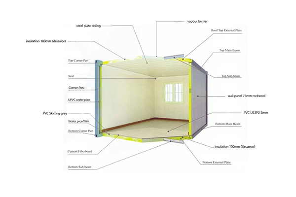 قالب بارد من الفولاذ المجلفن. يتكون الهيكل من ثلاثة أجزاء معيارية: إطار السقف، وزاوية